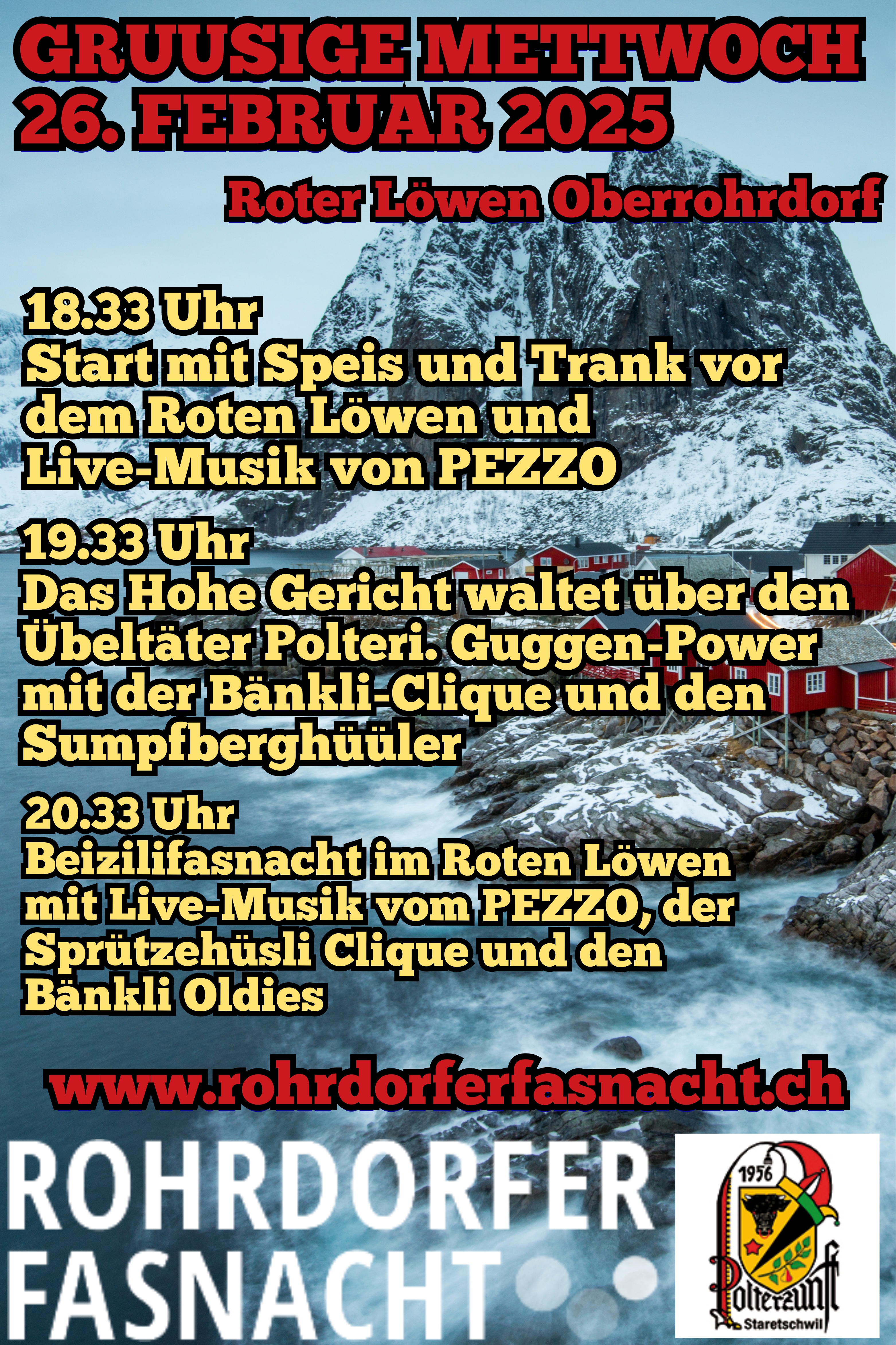 Die Polterzunft Staretschwil lädt herzlich zum "Gruusige Mettwoch", beim und im Roten Löwen in Oberrohrdorf ein.