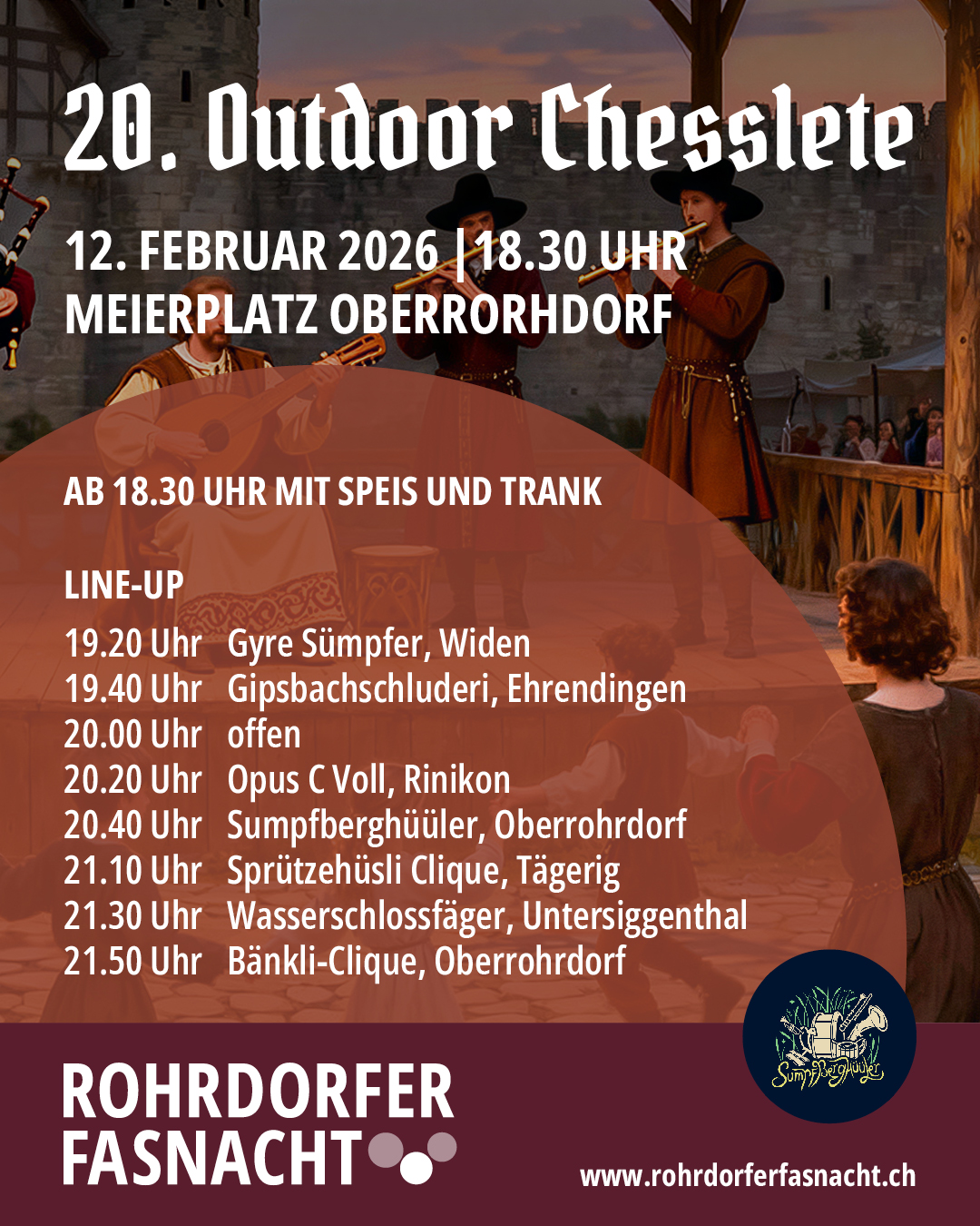 Die Outdoor Chesslete der Sumpfberghüüler findet ab 17:30 Uhr auf dem Meierplatz in Oberrohrdorf statt.